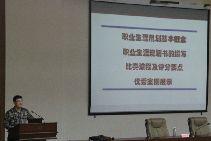 4月15日,学工部副部长孙丙高在学术会馆第二报告厅举行职业生涯规划赛前培训,主题为“出彩,你的生涯规划”。此次活动由经管学院团委主办,经管学院学生会心理发展部承办。