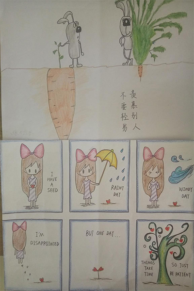 此次心理漫画活动使同学们明白作为正在接受高等教育的大学生,应该更加包容,敞开自己的心扉,既不要轻易给别人贴标签,也不要将自己放入某个框中,应与自己的好朋友快乐的度过大学时光,带着梦想、带着内心的自己一起放飞!