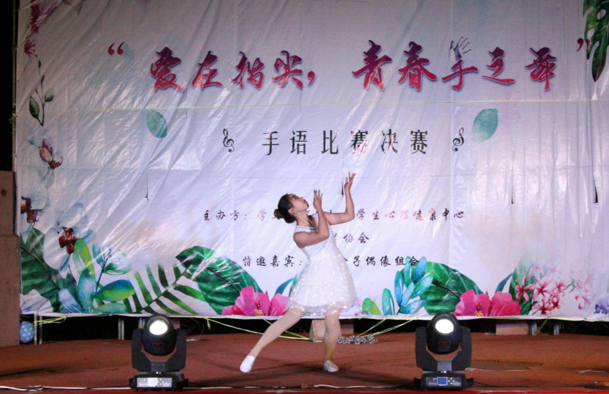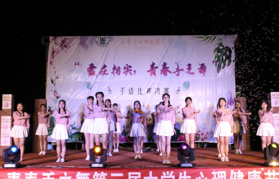 手语走进生活,谱写青春篇章:外国语学院参赛队用指尖诉说温暖与感动,多变的队形和整齐的动作赢得在场观众的热烈掌声及评委的肯定。