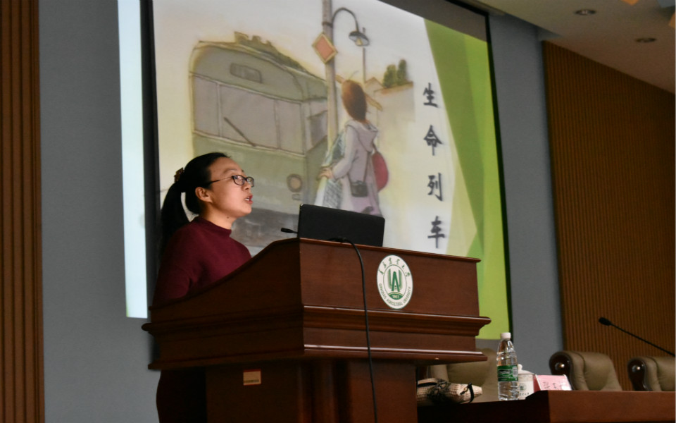 首先,刘翔宇对张玉梅书记做了介绍,并代表全院新生欢迎张书记的到来。随后张玉梅以“年长的师姐”自称,通过自身的求学和生活经历引出自己对生命、学习、生活和求职的感悟。张书记为在座的师生播放了视频《人生的列车》,在视频中将人生比作一辆列车,在漫长的人生旅途中会经历相聚和离别,体会失意和感伤,使人深刻地理解了人生的丰富和生活的意义。“我们为什么活着”,张玉梅书记说,“人从起源、进化到发展,不断创新与进步,每个人都拥有无法替代的重要意义。”每位同学都带着这个问题,进行了深刻地思考。针对如今大学生普遍存在的书写减少,阅读粗糙,沉迷游戏等退行问题,张书记指出,生命的意义在于传承、优化、存在,好好活着就是做很多有意义的事情,而不能浪费时间和生命。她为大家分享了众多名人事迹、真实案例,在场的同学无不动容,这些事例很好地为同学们树立了崇高的榜样。