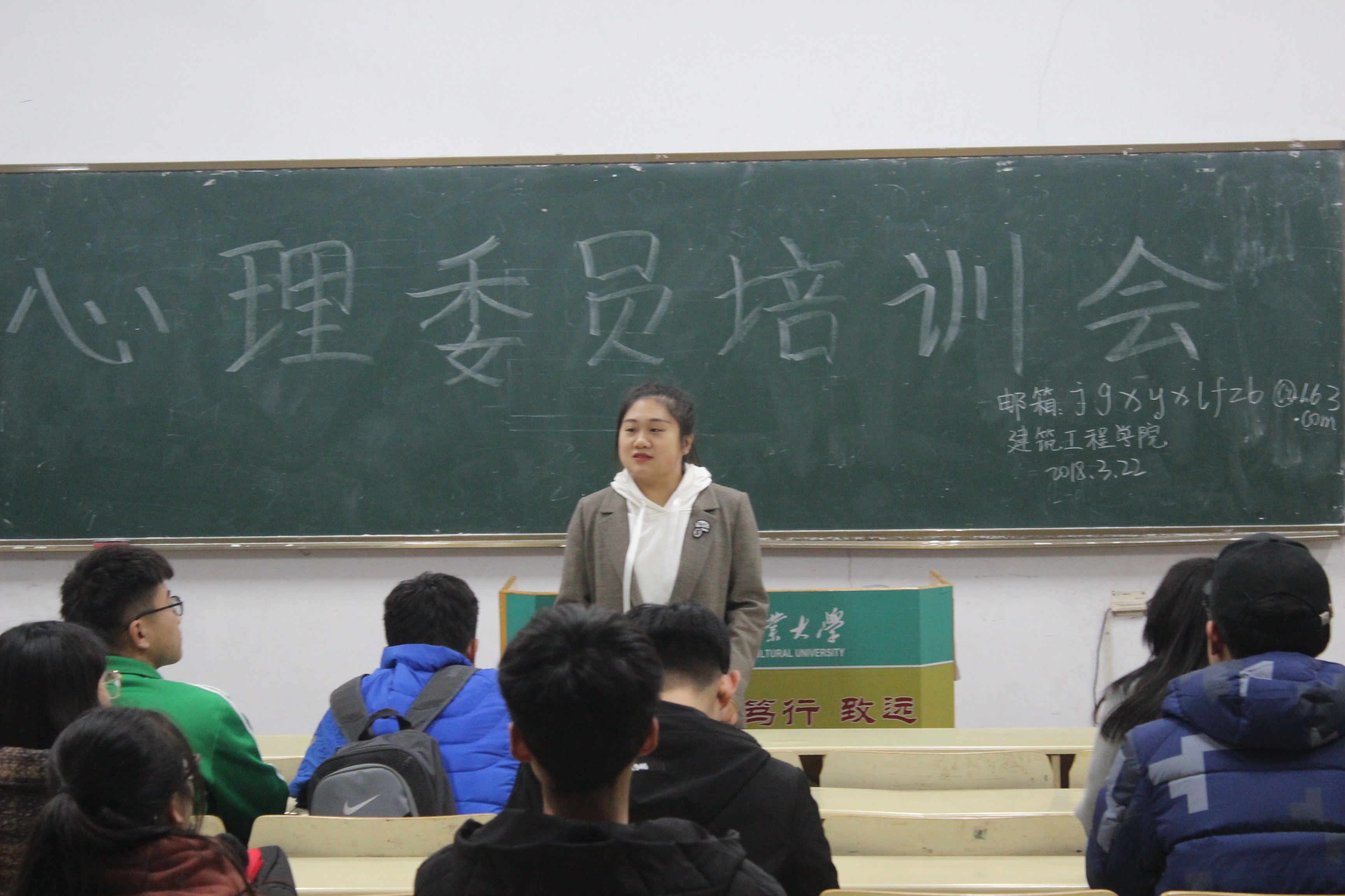 3月22日,为及时了解学院学生思想动态,全面掌握学生学习动向,进一步发展和完善学院心理健康教育建设,青岛农业大学建筑工程学院在教学区组织开展心理委员培训会。建筑工程学院辅导员林鑫出席,17级全体心理委员参加并学习。