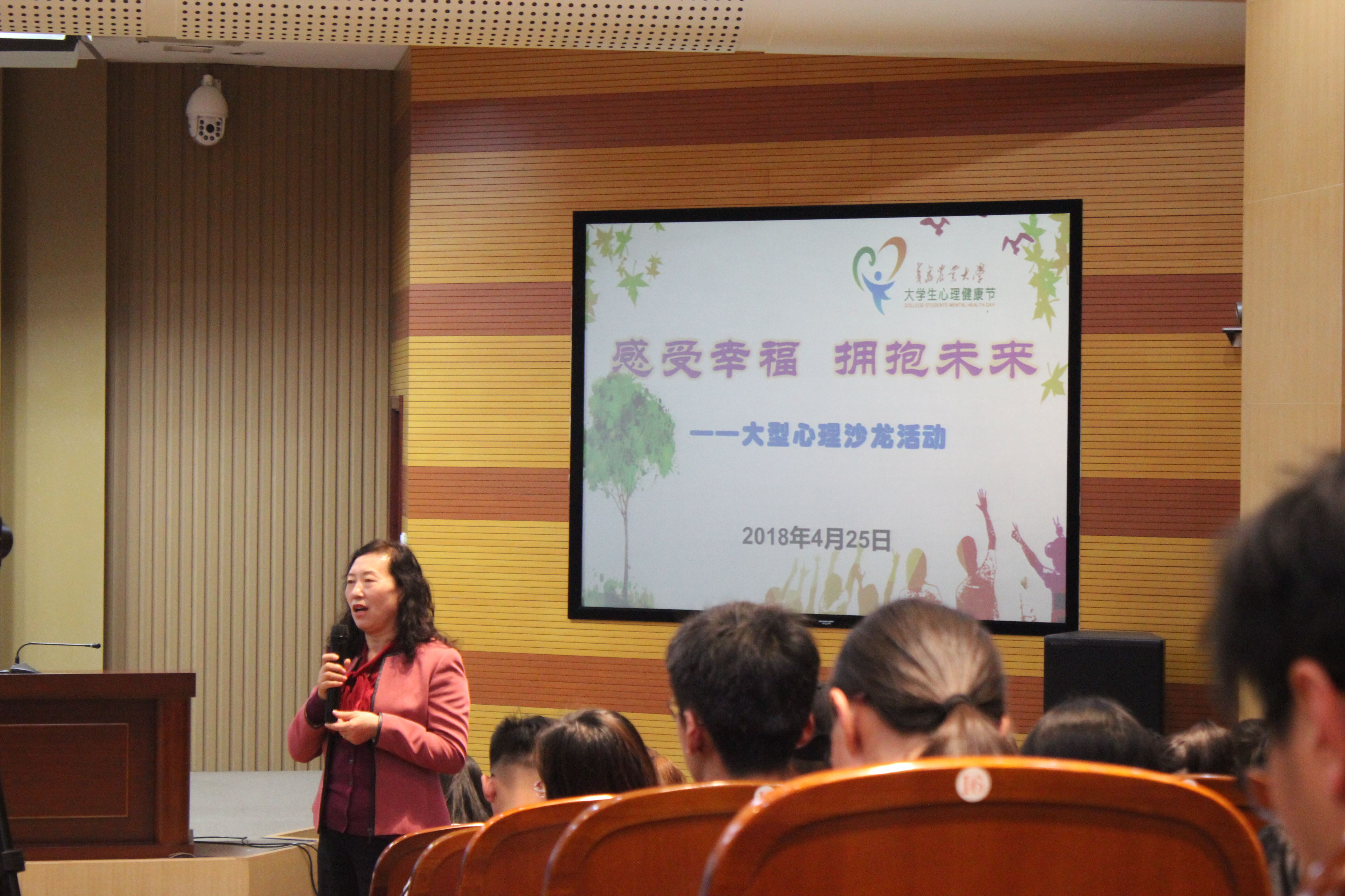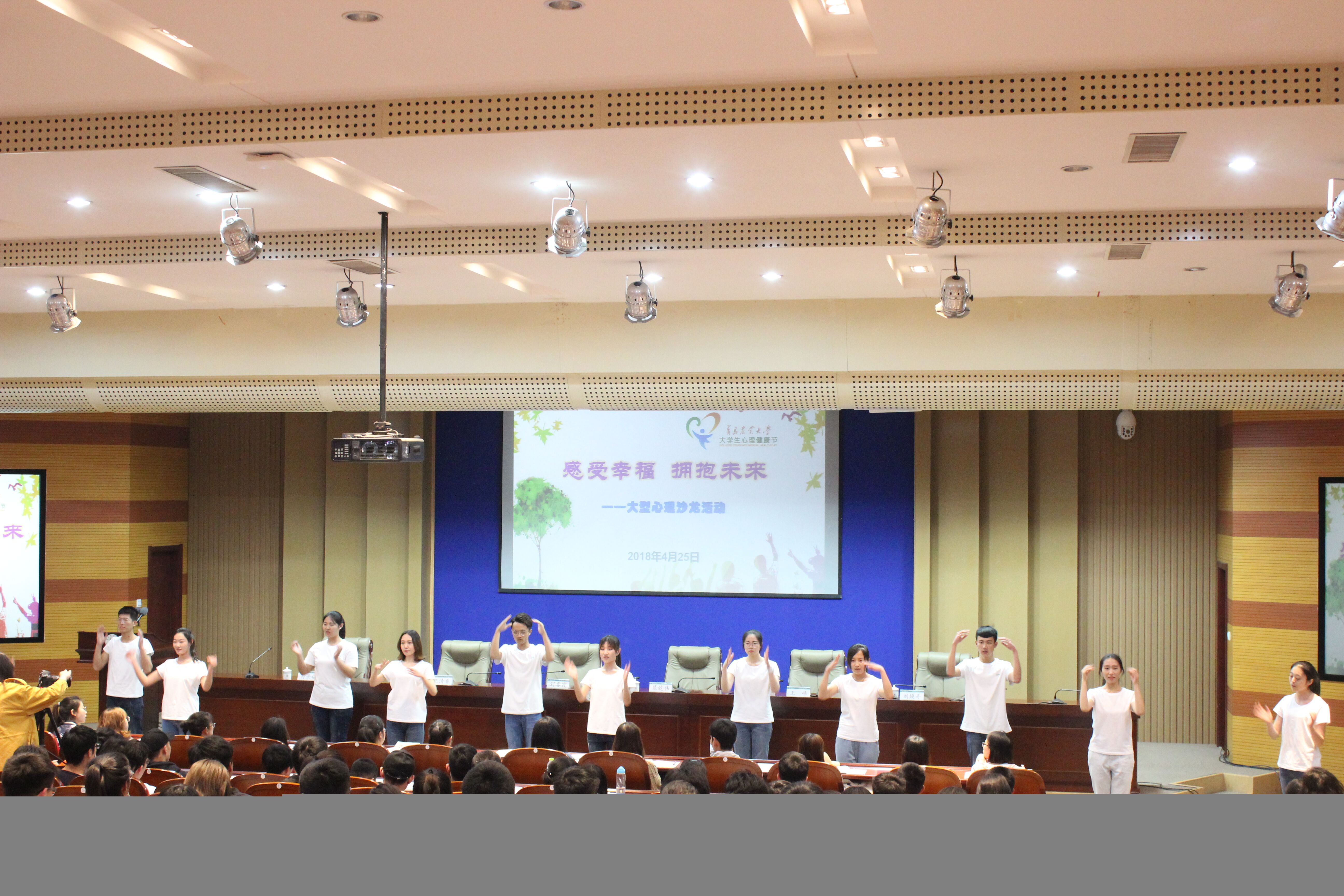 4月25日,青岛农业大学第十四届大学生心理健康节开幕式在学术会馆第一报告厅举行,人文社会科学学院全体领导和心理健康老师出席开幕式。